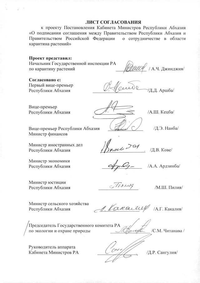 Постановление Кабинета Министров Республики Абхазия от 6.08.2019 №120 "О заключении Соглашения между Правительством Республики Абхазия и Правительством Российской Федерации о сотрудничестве в области карантина растений"