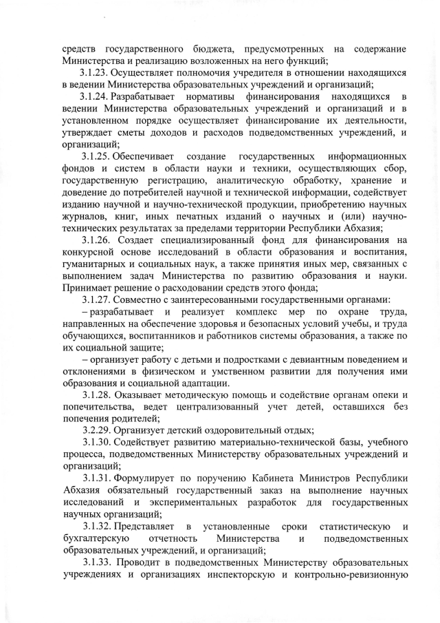 Постановление Кабинета Министров Республики Абхазия от 6.08.2019 №121 "Об утверждении Положения о Министерстве образования и науки Республики Абхазия"