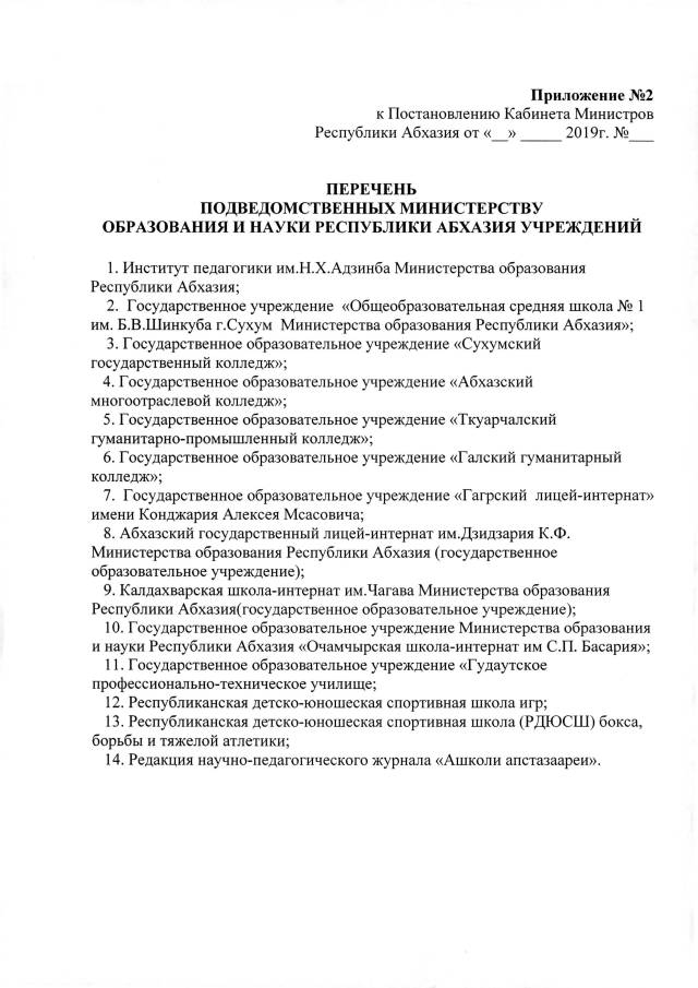 Постановление Кабинета Министров Республики Абхазия от 6.08.2019 №121 "Об утверждении Положения о Министерстве образования и науки Республики Абхазия"