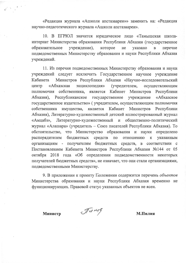 Постановление Кабинета Министров Республики Абхазия от 6.08.2019 №121 "Об утверждении Положения о Министерстве образования и науки Республики Абхазия"