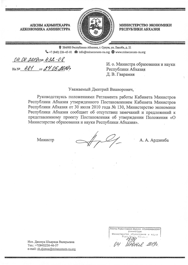 Постановление Кабинета Министров Республики Абхазия от 6.08.2019 №121 "Об утверждении Положения о Министерстве образования и науки Республики Абхазия"