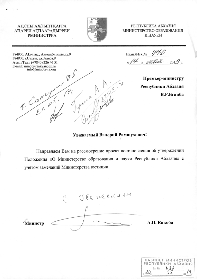 Постановление Кабинета Министров Республики Абхазия от 6.08.2019 №121 "Об утверждении Положения о Министерстве образования и науки Республики Абхазия"
