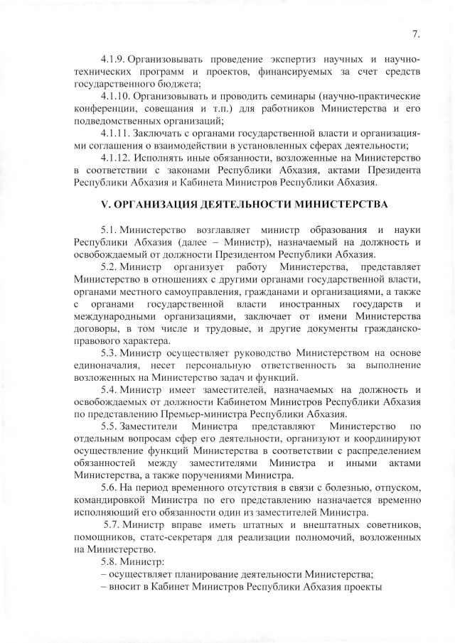 Постановление Кабинета Министров Республики Абхазия от 6.08.2019 №121 "Об утверждении Положения о Министерстве образования и науки Республики Абхазия"