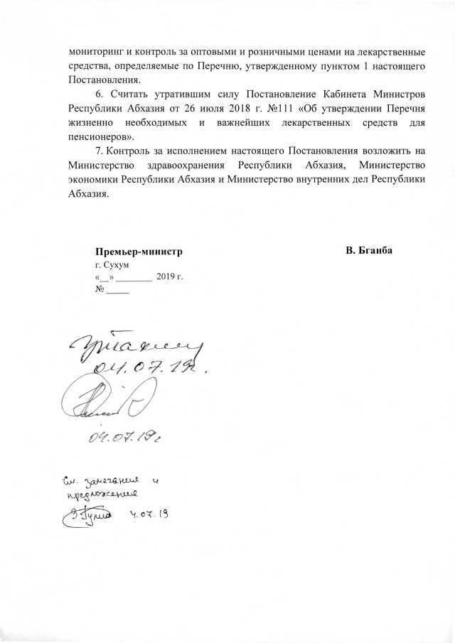 Постановление Кабинета Министров Республики Абхазия от 6.08.2019 №124 "Об утверждении Перечня жизненно необходимых и важнейших лекарственных средств"