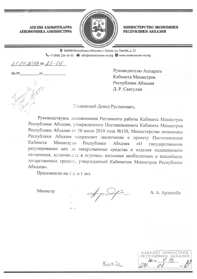 Постановление Кабинета Министров Республики Абхазия от 6.08.2019 №124 "Об утверждении Перечня жизненно необходимых и важнейших лекарственных средств"