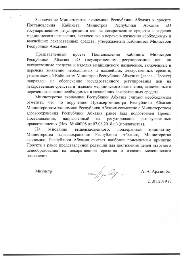 Постановление Кабинета Министров Республики Абхазия от 6.08.2019 №124 "Об утверждении Перечня жизненно необходимых и важнейших лекарственных средств"