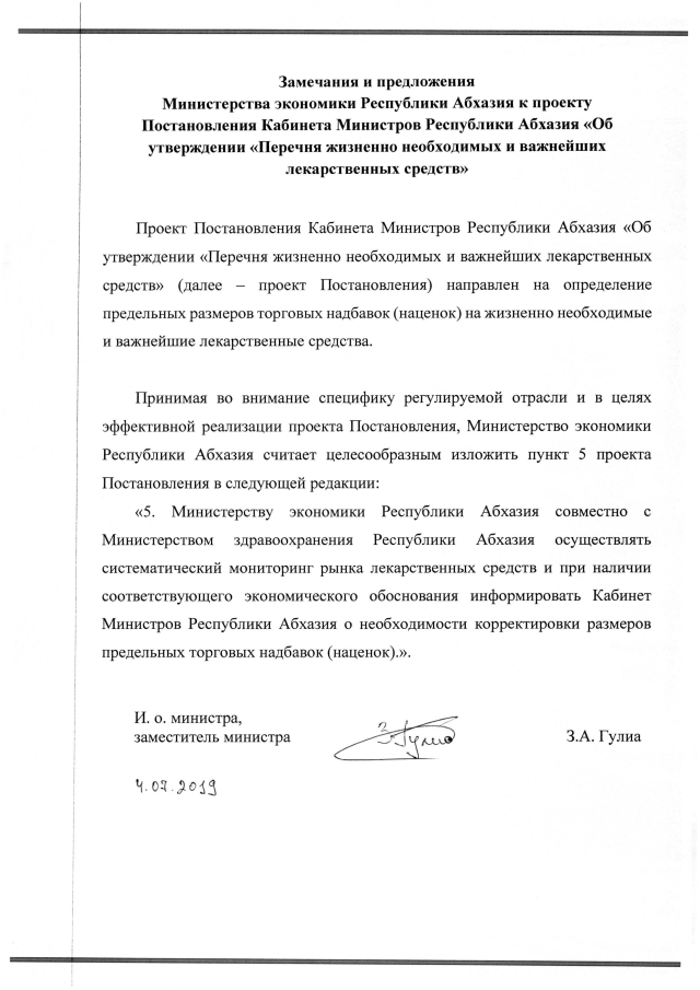 Постановление Кабинета Министров Республики Абхазия от 6.08.2019 №124 "Об утверждении Перечня жизненно необходимых и важнейших лекарственных средств"