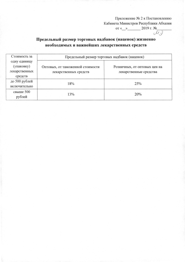 Постановление Кабинета Министров Республики Абхазия от 6.08.2019 №124 "Об утверждении Перечня жизненно необходимых и важнейших лекарственных средств"
