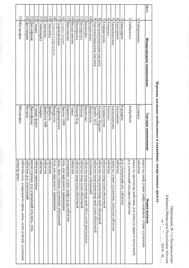 Постановление Кабинета Министров Республики Абхазия от 6.08.2019 №124 "Об утверждении Перечня жизненно необходимых и важнейших лекарственных средств"