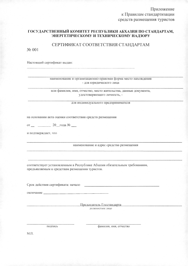 Постановление Кабинета Министров Республики Абхазия от 6.08.2019 №125 "Об утверждении Правил стандартизации средств размещения"