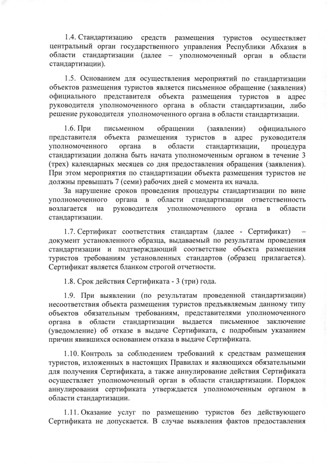 Постановление Кабинета Министров Республики Абхазия от 6.08.2019 №125 "Об утверждении Правил стандартизации средств размещения"