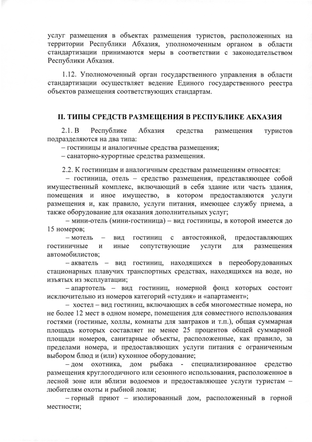Постановление Кабинета Министров Республики Абхазия от 6.08.2019 №125 "Об утверждении Правил стандартизации средств размещения"
