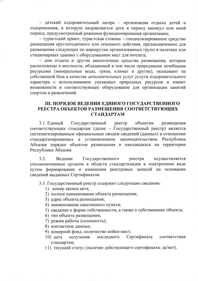 Постановление Кабинета Министров Республики Абхазия от 6.08.2019 №125 "Об утверждении Правил стандартизации средств размещения"