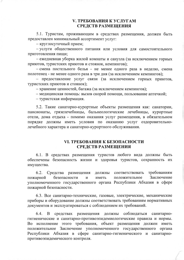 Постановление Кабинета Министров Республики Абхазия от 6.08.2019 №125 "Об утверждении Правил стандартизации средств размещения"