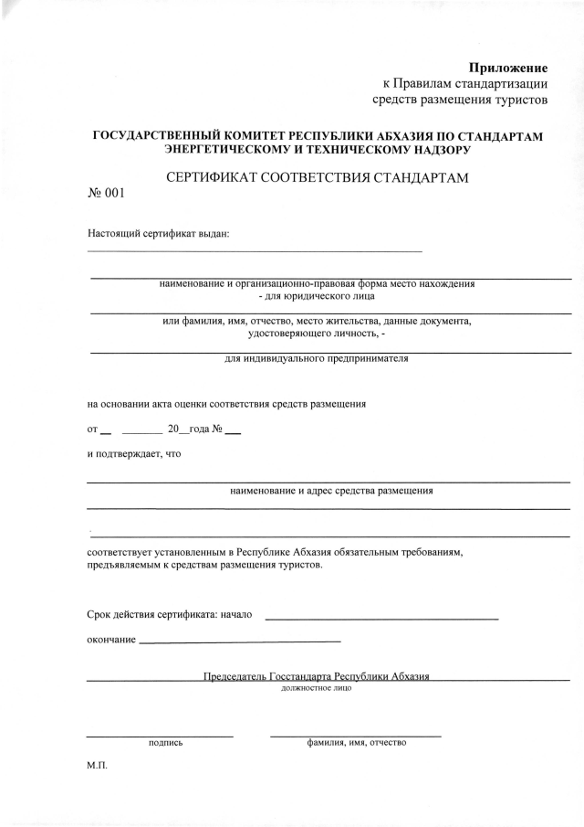 Постановление Кабинета Министров Республики Абхазия от 6.08.2019 №125 "Об утверждении Правил стандартизации средств размещения"
