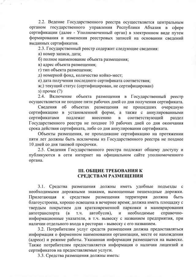 Постановление Кабинета Министров Республики Абхазия от 6.08.2019 №125 "Об утверждении Правил стандартизации средств размещения"