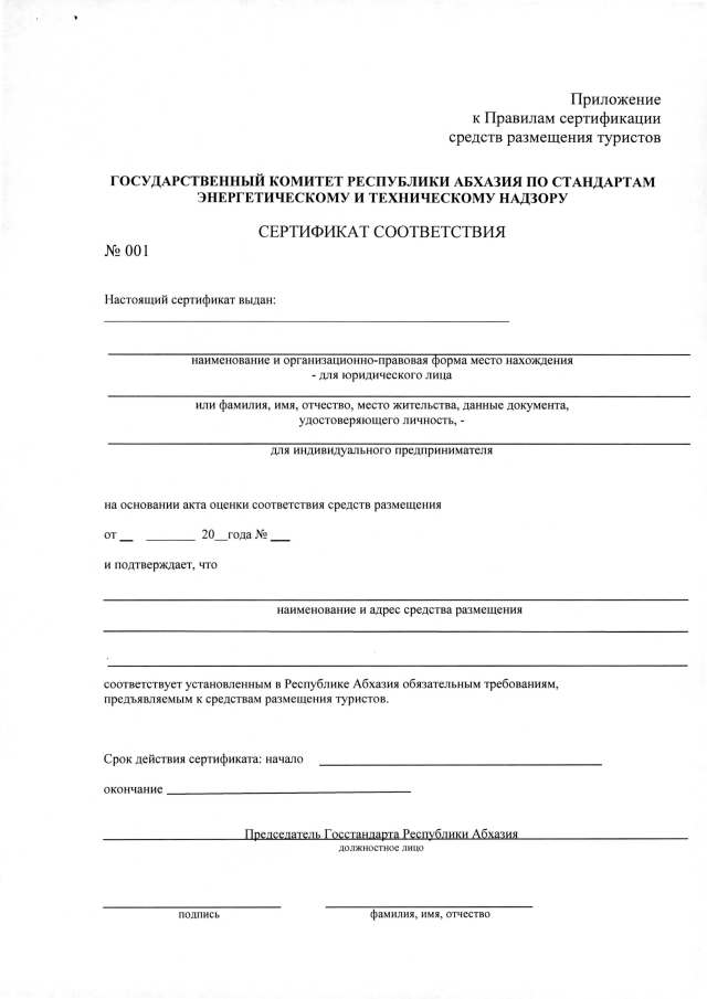 Постановление Кабинета Министров Республики Абхазия от 6.08.2019 №125 "Об утверждении Правил стандартизации средств размещения"