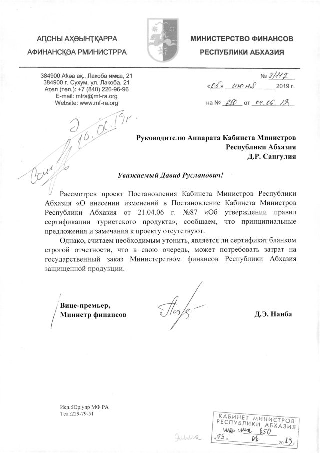 Постановление Кабинета Министров Республики Абхазия от 6.08.2019 №125 "Об утверждении Правил стандартизации средств размещения"