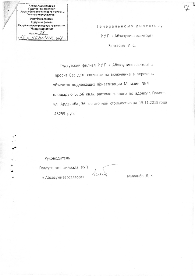 Постановление Кабинета Министров Республики Абхазия от 6.08.2019 №126 "О включении помещения магазина №4 (г. Гудаута, ул. В. Г. Ардзинба, 36) и здания ДСК (г. Гагра, ул. Русских Добровольцев, 11) в перечень объектов, подлежащих приватизации, и утверждении условий их приватизации "