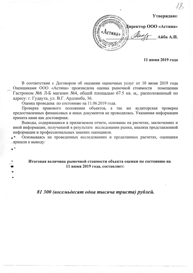 Постановление Кабинета Министров Республики Абхазия от 6.08.2019 №126 "О включении помещения магазина №4 (г. Гудаута, ул. В. Г. Ардзинба, 36) и здания ДСК (г. Гагра, ул. Русских Добровольцев, 11) в перечень объектов, подлежащих приватизации, и утверждении условий их приватизации "
