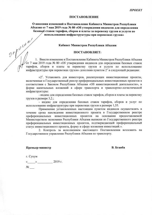 Постановление Кабинета Министров Республики Абхазия от 6.08.2019 №127 ""