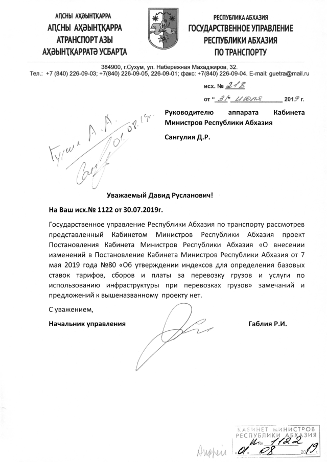 Постановление Кабинета Министров Республики Абхазия от 6.08.2019 №127 ""