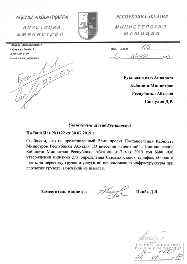 Постановление Кабинета Министров Республики Абхазия от 6.08.2019 №127 ""