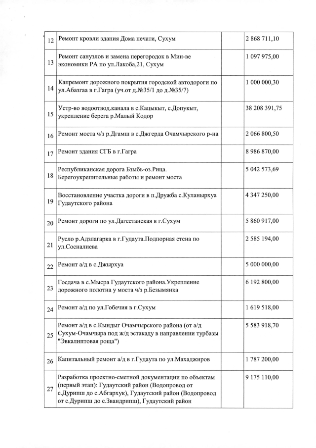 Постановление Кабинета Министров Республики Абхазия от 21.08.2019 №129 "О внесении изменений в Постановление Кабинета Министров Республики Абхазия от 31 января 2019 года №12 "О Перечне объектов, подлежащих строительству, ремонту и реконструкции в 2019 году за счет средств Республиканского бюджета"
