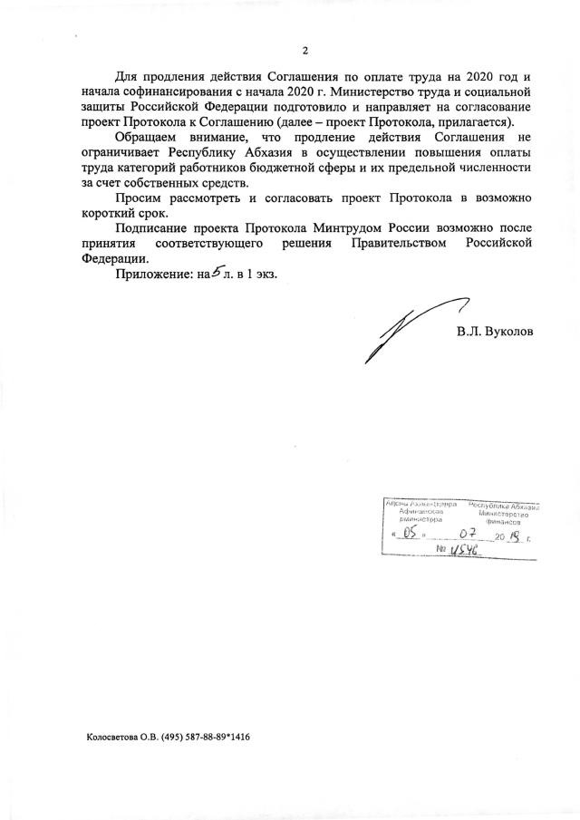 Постановление Кабинета Министров Республики Абхазия от 22.08.2019 №130 "О проекте Протокола к Соглашению между Республикой Абхазии и Российской Федерацией о порядке и условиях софинансирования за счет средств Российской Федерации повышения заработной платы основных категорий работников государственных учреждений Республики Абхазия в сфере здравоохранения, образования, науки, культуры, спорта и социального обслуживания граждан от 14 апреля 2015 года"