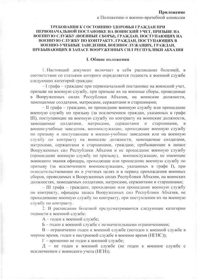 Постановление Кабинета Министров Республики Абхазия от 22.08.2019 №131 "Об утверждении Положения о военно-врачебной комиссии"