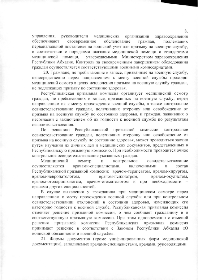 Постановление Кабинета Министров Республики Абхазия от 22.08.2019 №131 "Об утверждении Положения о военно-врачебной комиссии"