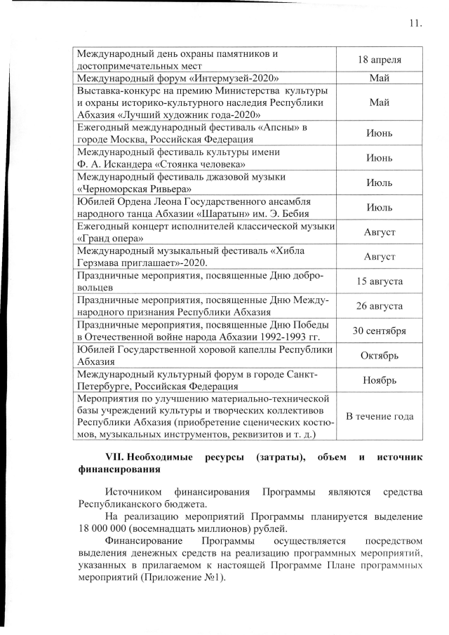 Постановление Кабинета Министров Республики Абхазия от 23.10.2019 №143 "Об утверждении ведомственной целевой программы "План мероприятий Министерства культуры и охраны историко- культурного наследия Республики Абхазия на 2020 год""