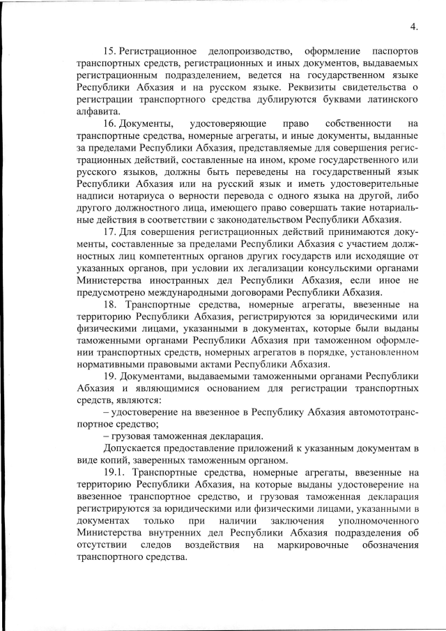 Постановление Кабинета Министров Республики Абхазия от 23.10.2019 №149 "Об утверждении "Правил государственной регистрации автомототранспортных средств и прицепов к ним в Государственной автомобильной инспекции Министерства внутренних дел Республики Абхазия", бланков специальной продукции Государственной автомобильной инспекции Министерства внутренних дел Республики Абхазия и "Технических требований к государственным регистрационным знакам автомототранспортных средств и прицепов к ним Республики Абхазия""