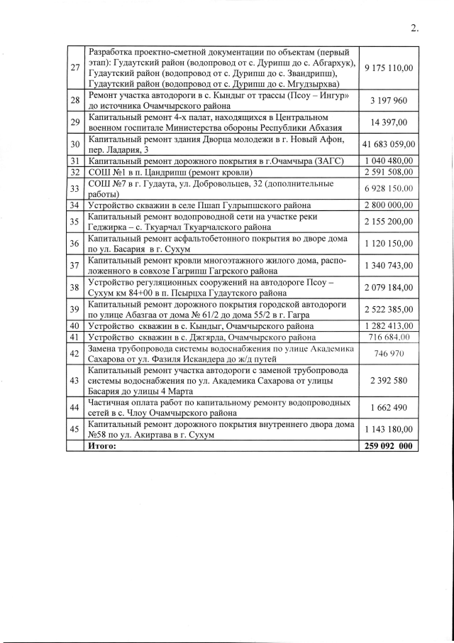 Постановление Кабинета Министров Республики Абхазия от 23.10.2019 №150 "О внесении изменений в Постановление Кабинета Министров Республики Абхазия от 31 января 2019 года №12 "О перечне объектов, подлежащих строительству, ремонту и реконструкции в 2019 году за счет средств Республиканского бюджета""