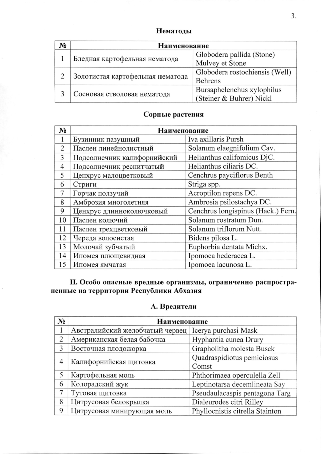 Постановление Кабинета Министров Республики Абхазия от 23.10.2019 №152 "Об утверждении Перечня особо опасных вредных организмов"