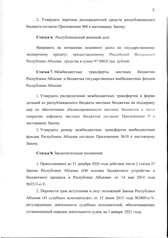 Постановление Кабинета Министров Республики Абхазия от 28.10.2019 №155 "О проекте Закона Республики Абхазия "О республиканском бюджете на 2020 год""