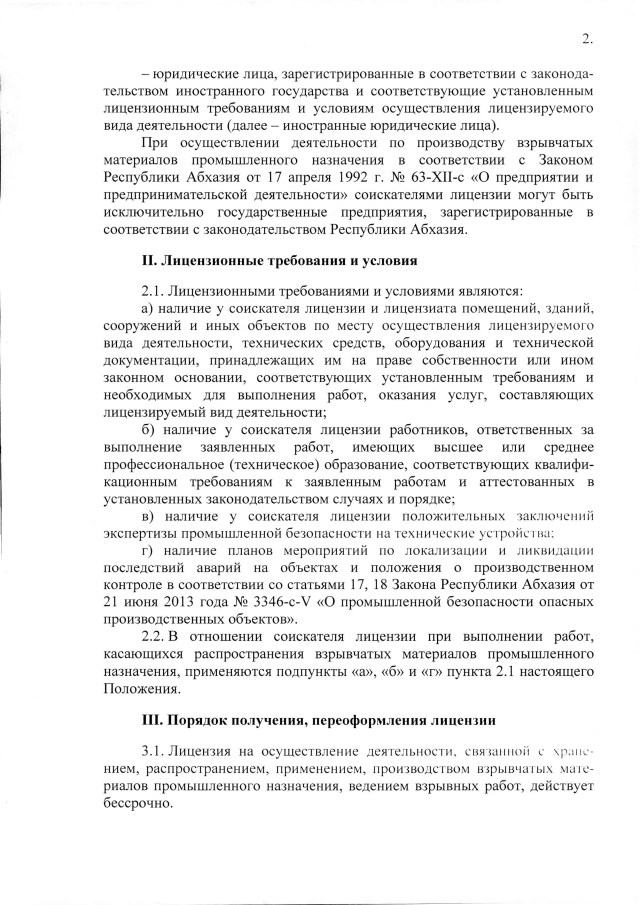 Постановление Кабинета Министров Республики Абхазия от 28.10.2019 №164 "Об утверждении "Положения о лицензировании деятельности, связанной с использованием, транспортировкой, обслуживанием, складированием источников, ионизирующих излучения, и радиоактивных материалов" и "Положения о лицензировании хранения, распространения, применения, производства взрывчатых материалов промышленного назначения, ведения взрывных работ""
