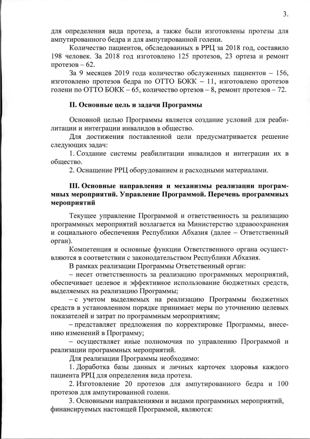 Постановление Кабинета Министров Республики Абхазия от 20.11.2019 №170 "Об утверждении ведомственной целевой программы на 2020 год "Медицинская реабилитация инвалидов Отечественной войны народа Абхазии 1992-1993 гг.""