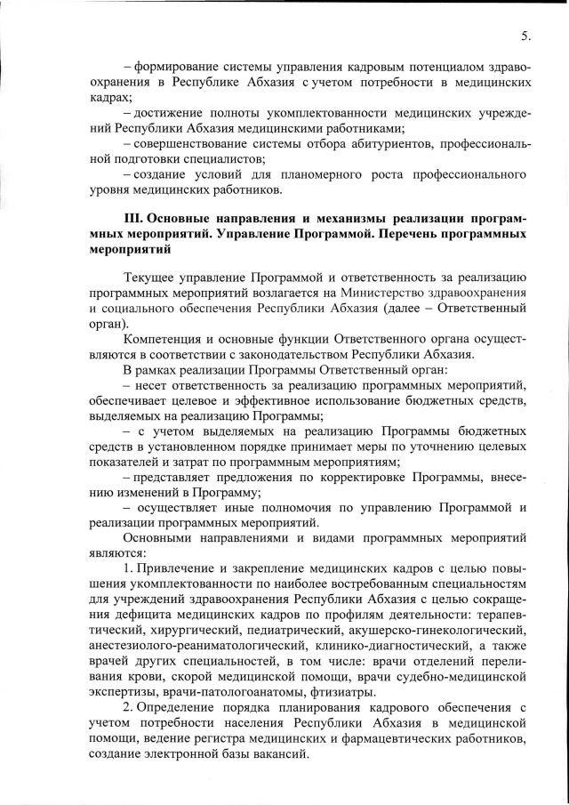 Постановление Кабинета Министров Республики Абхазия от 20.11.2019 №171 "Об утверждении ведомственной целевой программы на 2020 год "Кадровое обеспечение системы здравоохранения Республики Абхазия"