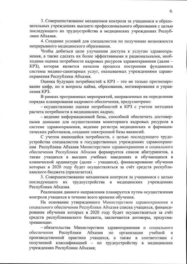 Постановление Кабинета Министров Республики Абхазия от 20.11.2019 №171 "Об утверждении ведомственной целевой программы на 2020 год "Кадровое обеспечение системы здравоохранения Республики Абхазия"