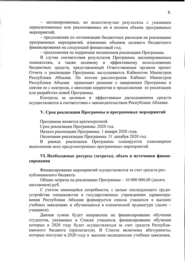 Постановление Кабинета Министров Республики Абхазия от 20.11.2019 №171 "Об утверждении ведомственной целевой программы на 2020 год "Кадровое обеспечение системы здравоохранения Республики Абхазия"