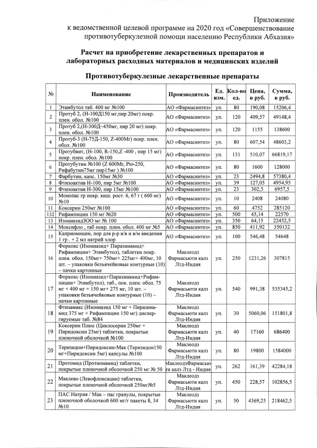 Постановление Кабинета Министров Республики Абхазия от 20.11.2019 №172 "Об утверждении ведомственной целевой программы на 2020 год "Совершенствование противотуберкулезной помощи населению Республики Абхазия""
