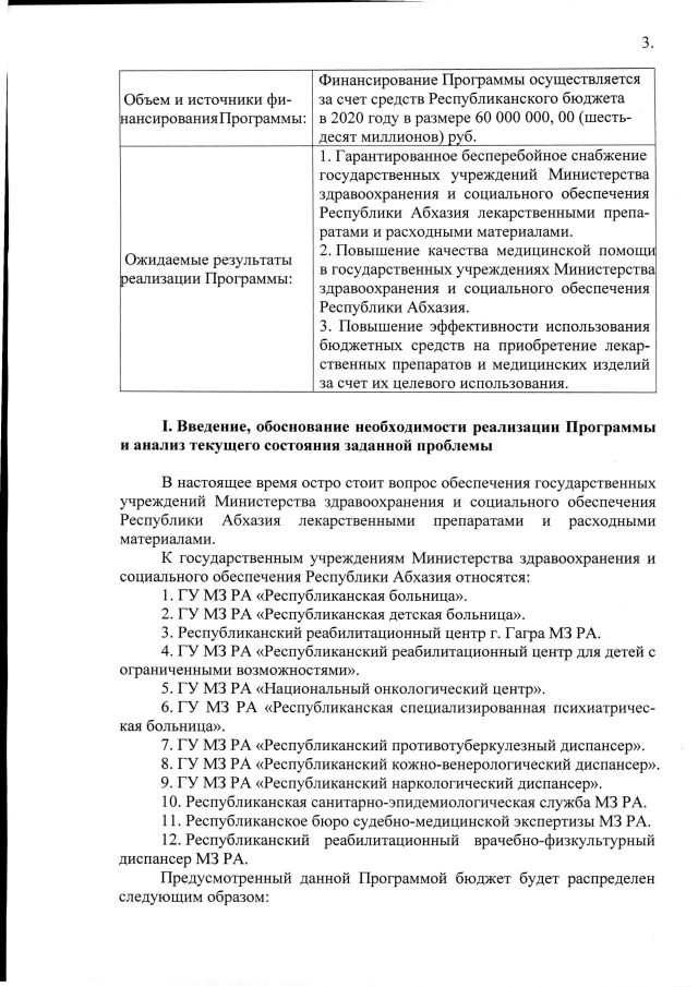 Постановление Кабинета Министров Республики Абхазия от 20.11.2019 №174 "Об утверждении ведомственной целевой программы на 2020 год "Централизованное приобретение лекарственных препаратов и расходных материалов для обеспечения государственных учреждений Министерства здравоохранения и социального обеспечения Республики Абхазия""