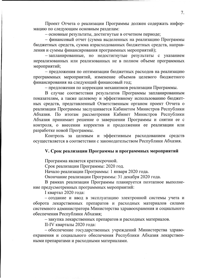 Постановление Кабинета Министров Республики Абхазия от 20.11.2019 №174 "Об утверждении ведомственной целевой программы на 2020 год "Централизованное приобретение лекарственных препаратов и расходных материалов для обеспечения государственных учреждений Министерства здравоохранения и социального обеспечения Республики Абхазия""