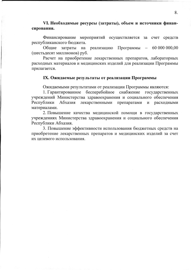Постановление Кабинета Министров Республики Абхазия от 20.11.2019 №174 "Об утверждении ведомственной целевой программы на 2020 год "Централизованное приобретение лекарственных препаратов и расходных материалов для обеспечения государственных учреждений Министерства здравоохранения и социального обеспечения Республики Абхазия""