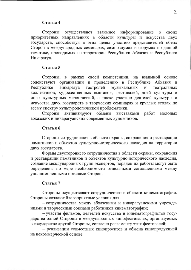 Постановление Кабинета Министров Республики Абхазия от 20.11.2019 №180 "О заключении Соглашения между Правительством Республики Абхазия и Правительством Республики Никарагуа о сотрудничестве в области культуры"