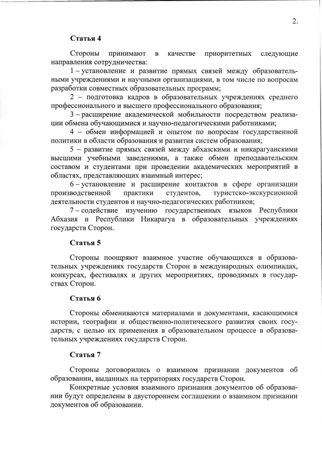 Постановление Кабинета Министров Республики Абхазия от 20.11.2019 №181 "О заключении Соглашения между Правительством Республики Абхазия и Правительством Республики Никарагуа о сотрудничестве в области образования"