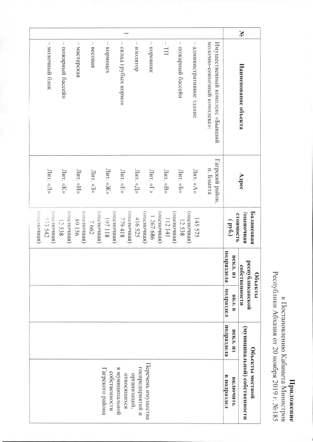 Постановление Кабинета Министров Республики Абхазия от 20.11.2019 №185 "О внесении изменений в Постановление Кабинета Министров Республики Абхазия от 6 июня 2002 года №117 "О порядке оформления разграничения государственной собственности и формирования Реестра собственности""