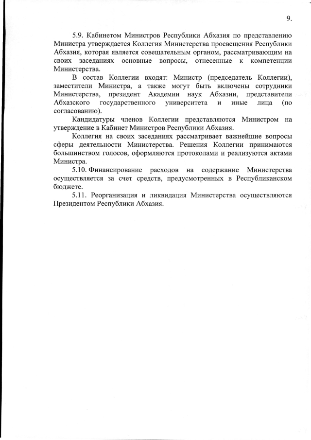 Постановление Кабинета Министров Республики Абхазия от 25.12.2019 №208 "Об утверждении Положения о Министерстве просвещения Республики Абхазия"