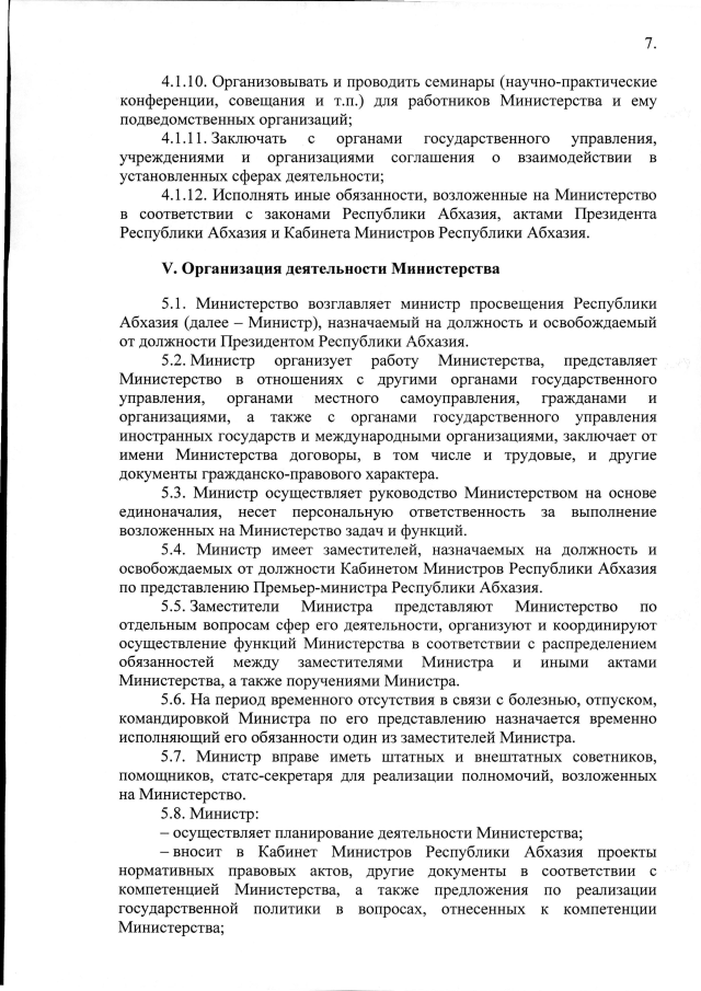 Постановление Кабинета Министров Республики Абхазия от 25.12.2019 №208 "Об утверждении Положения о Министерстве просвещения Республики Абхазия"